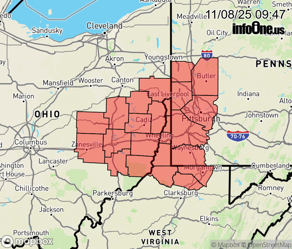 Canceled 11/8/25 10:00 AM Dense Fog Advisory issued November 8 at 9:44AM EST until November 8 at 10:00AM EST by NWS Pittsburgh PA The area is slowly clearing out and visibility is improving at numerous locations. However, expect a few locations hanging onto some lower visibility through 11am. Overall, expect visibility to improve across the area. ![]() |