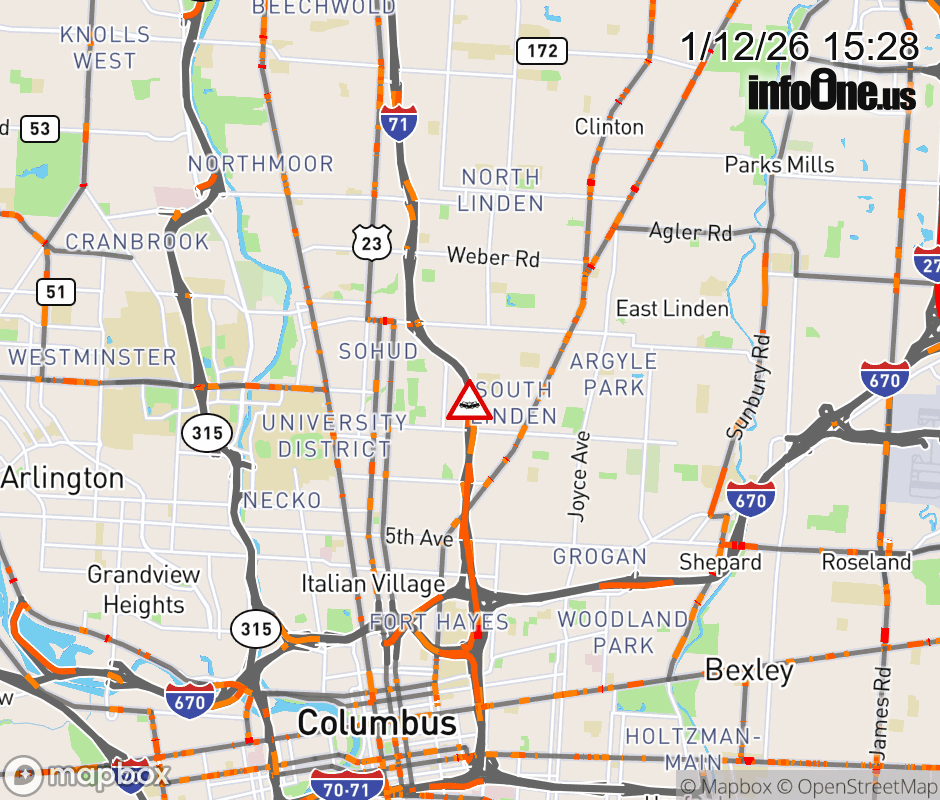 The left lane is blocked on I-71 South at 17th Ave, due to a crash. ![]() |