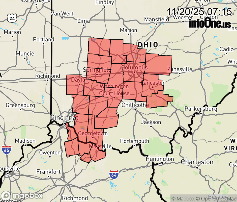 Canceled 11/20/25 10:00 AM Special Weather Statement issued November 20 at 7:13AM EST by NWS Wilmington OH Localized areas of dense fog with visibility of one quarter mile or less are occurring this morning. If traveling, be prepared for dense fog that could suddenly reduce visibility. Slow down and allow extra time to reach your destination. Fog will linger over the next couple of hours. ![]() |