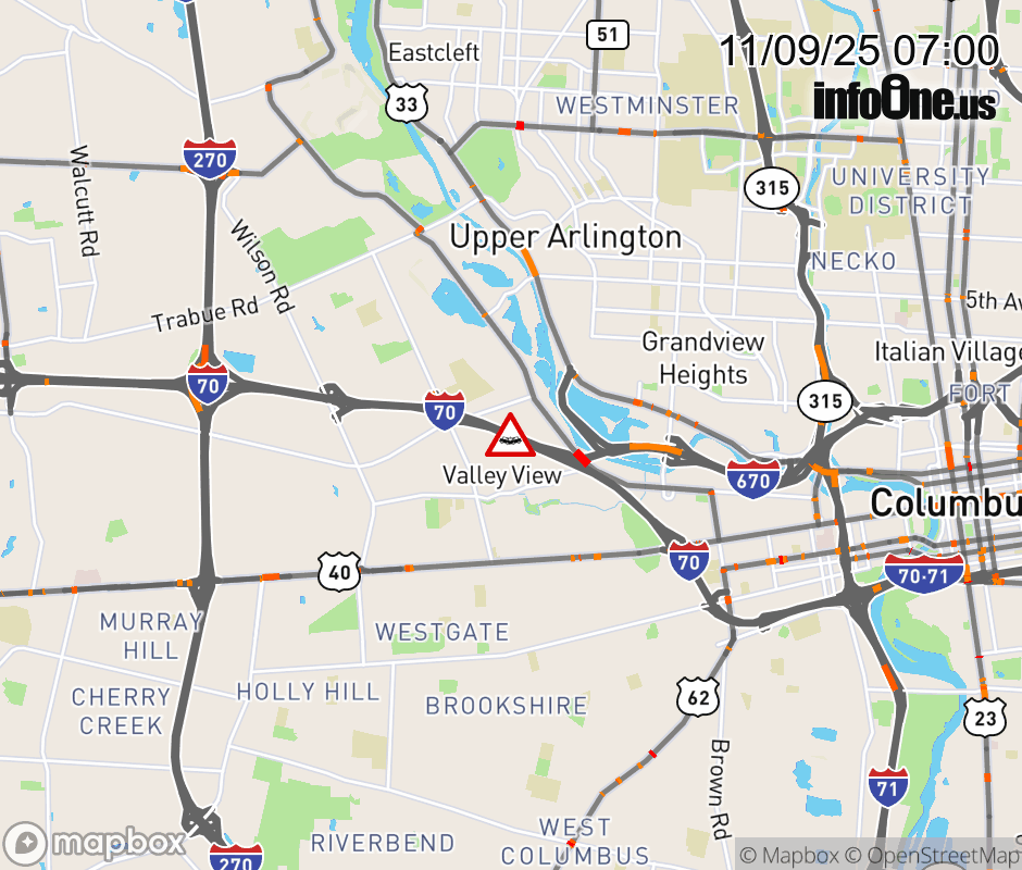 The left lane is blocked on I-70 West beyond US-40/ W Broad St, due to a crash. ![]() |