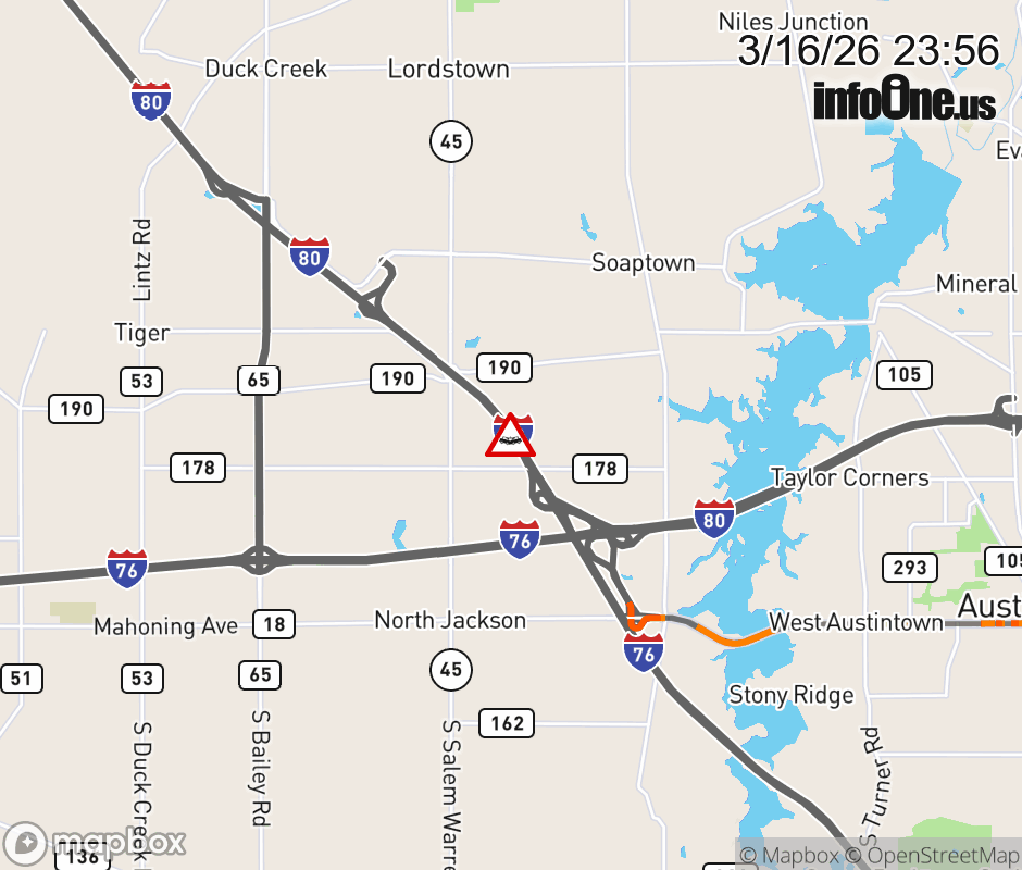 Expect lane closures on I-80 East (Ohio Turnpike) at I-76/80, due to a crash. ![]() |