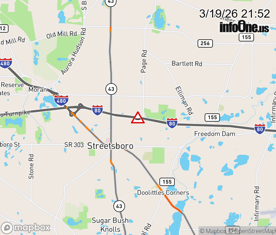 Expect lane closures on I-80 West (Ohio Turnpike) beyond SR-44, due to a crash. ![]() |