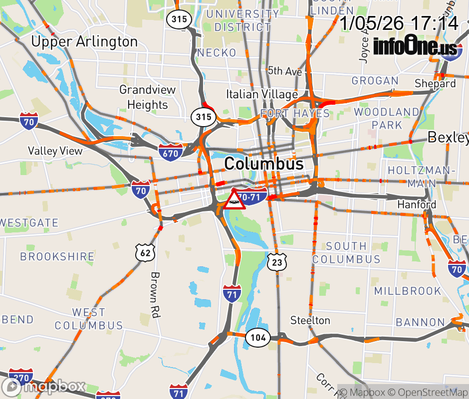 The left shoulder is blocked on Ramp I-71 South/I-70 West to I-71 South, due to a crash. ![]() |