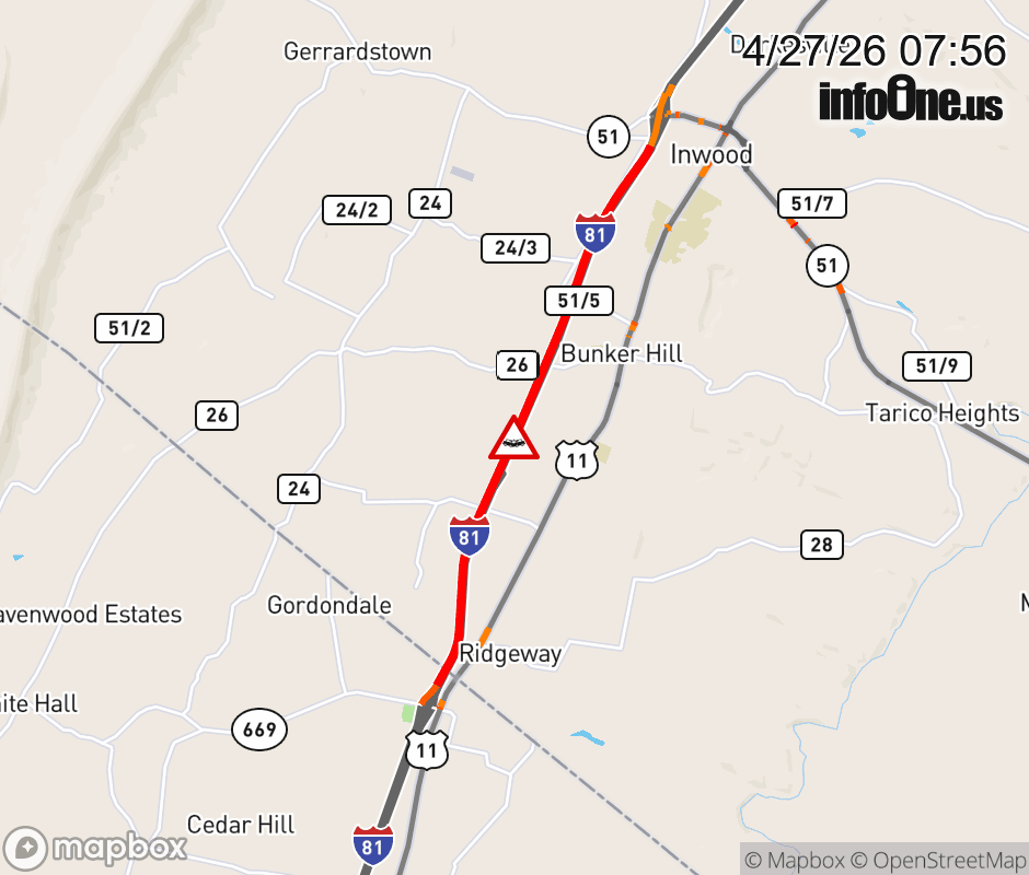 Vehicle Crash on I-81S at Mile Marker 2.0. The southbound road is closed. ![]() |