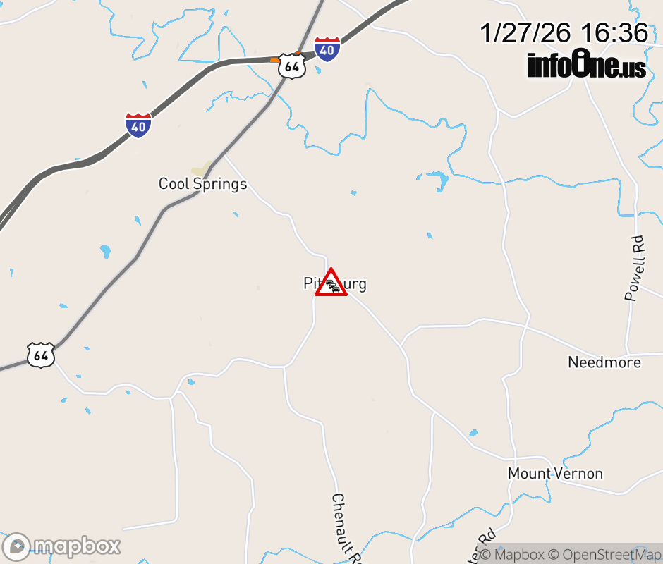 Cools Springs Road will be closed on the Rowan County side from Chenault Road and Dooley Road to the Iredell County line, and from the Iredell County line, Barry Oak Road will be closed to Hwy 64 in Iredell County due to extreme icy road conditions. ![]() Updated: Tue 1/27/26 4:36 PM EST |