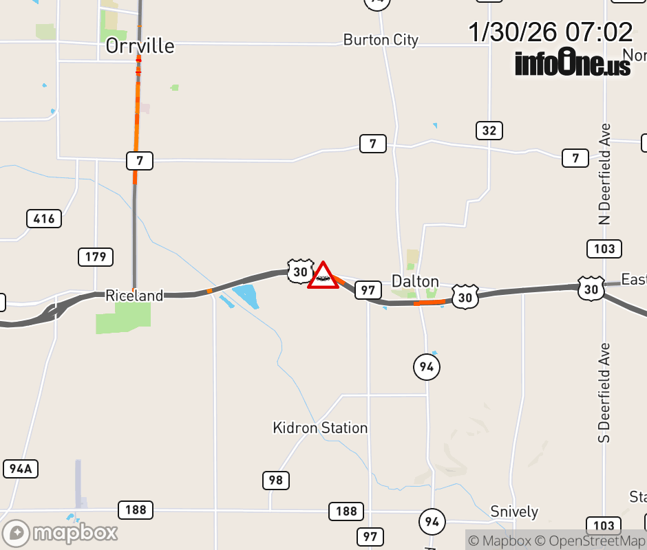 Expect lane closures on US-30 West beyond Wenger Rd S, due to a crash. Updated: Fri 1/30/26 7:02 AM EST ![]() Updated: Fri 1/30/26 7:02 AM EST |
