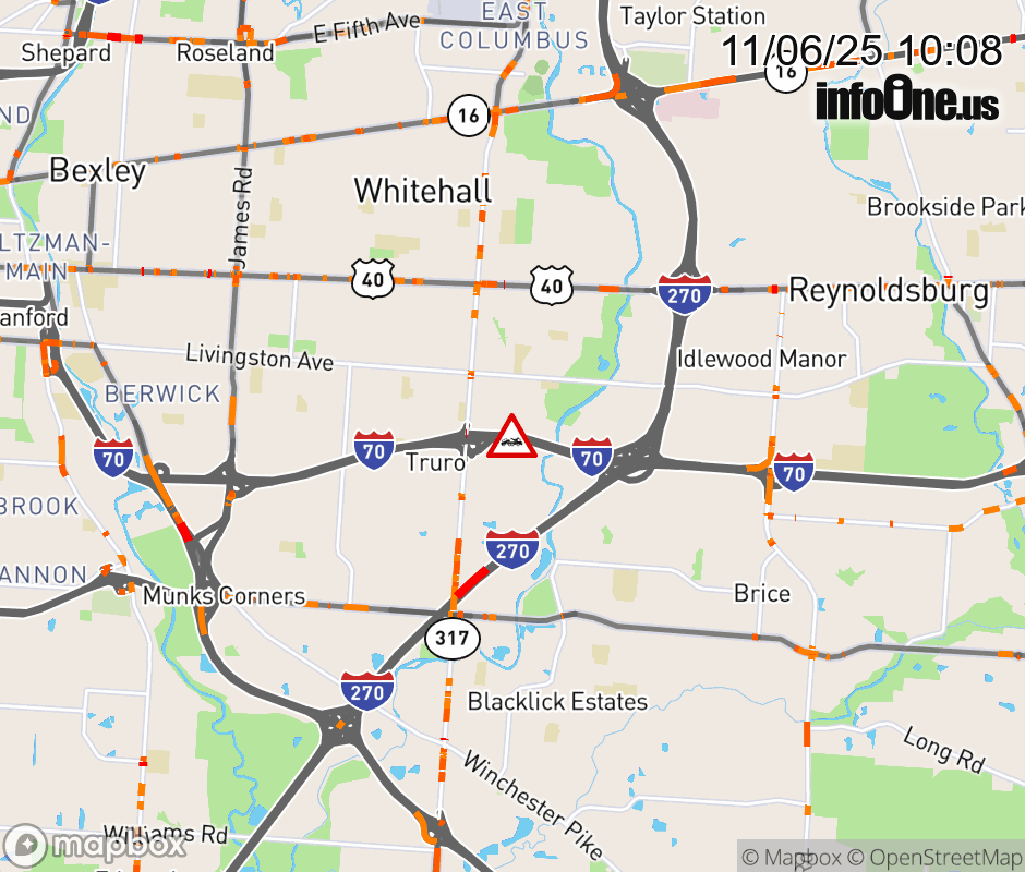 The right lane is blocked on I-70 West at SR-317/Hamilton Rd, due to a disabled vehicle. Updated: Thu 11/6/25 10:08 AM EST ![]() Updated: Thu 11/6/25 10:08 AM EST |