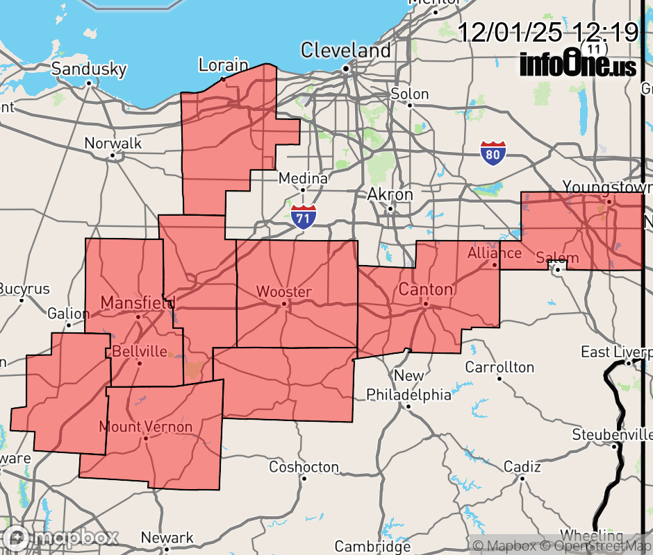 Canceled 12/1/25 1:53 PM Winter Weather Advisory issued December 1 at 12:13PM EST until December 2 at 1:00PM EST by NWS Cleveland OH * WHAT... Snow expected. Total snow accumulations of 2 to 5 inches. * WHERE... Portions of north central and northeast Ohio. * WHEN... From midnight tonight to 1 PM EST Tuesday. * IMPACTS... Plan on slippery road conditions. The hazardous conditions could impact the Tuesday morning commute. * ADDITIONAL DETAILS... The heaviest snow is expected between 4 AM and 9 AM. ![]() |