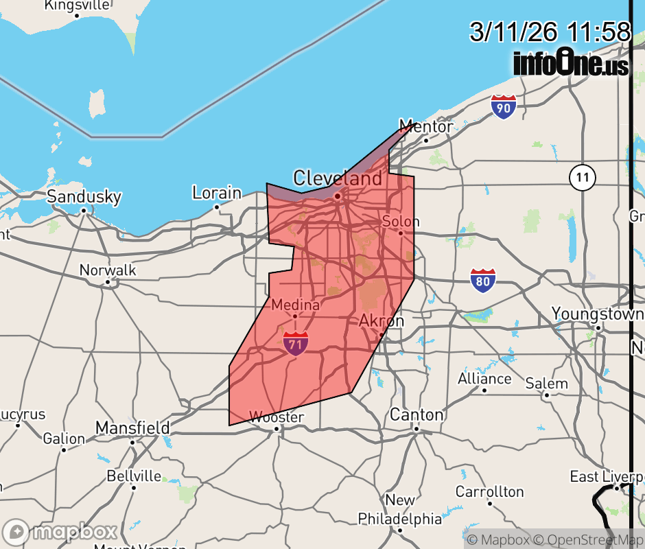 Canceled 3/11/26 12:39 PM Severe Thunderstorm Warning issued March 11 at 11:57AM EDT until March 11 at 12:45PM EDT by NWS Cleveland OH SVRCLE The National Weather Service in Cleveland has issued a * Severe Thunderstorm Warning for... Cuyahoga County in northeastern Ohio... Medina County in northeastern Ohio... Summit County in northeastern Ohio... Northern Wayne County in northeastern Ohio... * Until 1245 PM EDT. * At 1157 AM EDT, severe thunderstorms were located along a line extending from near Avon Lake to near Grafton to near West Salem, moving east at 70 mph. HAZARD...70 mph wind gusts and quarter size hail. SOURCE...Radar indicated. IMPACT...Minor damage to vehicles is possible. Expect considerable tree damage. Wind damage is also likely to mobile homes, roofs, and outbuildings. * Locations impacted include... Cleveland, Akron, Medina, Wooster, Parma, Lakewood, Cuyahoga Falls, Euclid, Cleveland Heights, Strongsville, Brunswick, Westlake, North Royalton, North Ridgeville, Barberton, Solon, Avon Lake, Hudson, Wadsworth, and Twinsburg. ![]() |