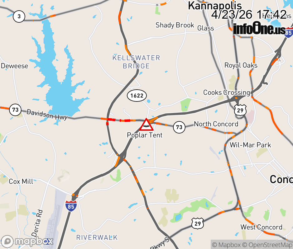 The ramp is closed at Exit 55 (NC 73 Davidson Hwy) Updated: Thu 4/23/26 5:42 PM EDT ![]() Updated: Thu 4/23/26 5:42 PM EDT |