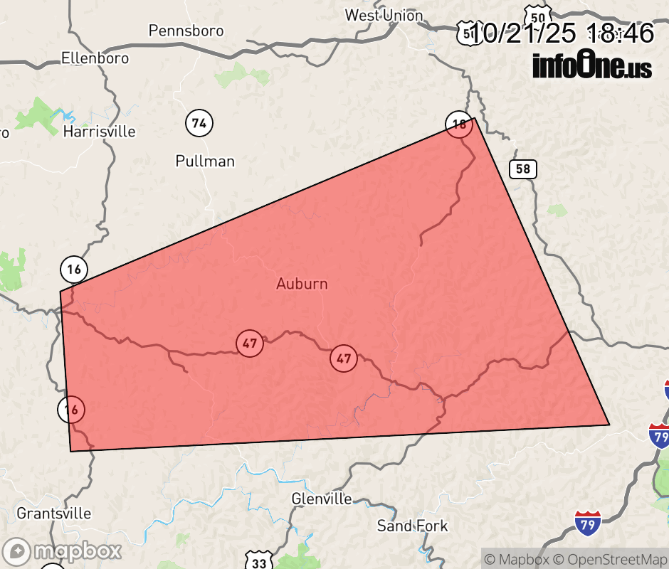Canceled 10/21/25 7:15 PM Special Weather Statement issued October 21 at 6:44PM EDT by NWS Charleston WV At 644 PM EDT, Doppler radar was tracking a strong thunderstorm 11 miles northeast of Grantsville, moving east at 40 mph. HAZARD...Wind gusts up to 50 mph and penny size hail. SOURCE...Radar indicated. IMPACT...Gusty winds could knock down tree limbs and blow around unsecured objects. Minor hail damage to vegetation is possible. Locations impacted include... Auburn, Newberne, Alum Bridge, Coxs Mills, Linn, Big Springs, Berea, Tanner, Grove, Leopold, Troy, and Burnt House. ![]() |