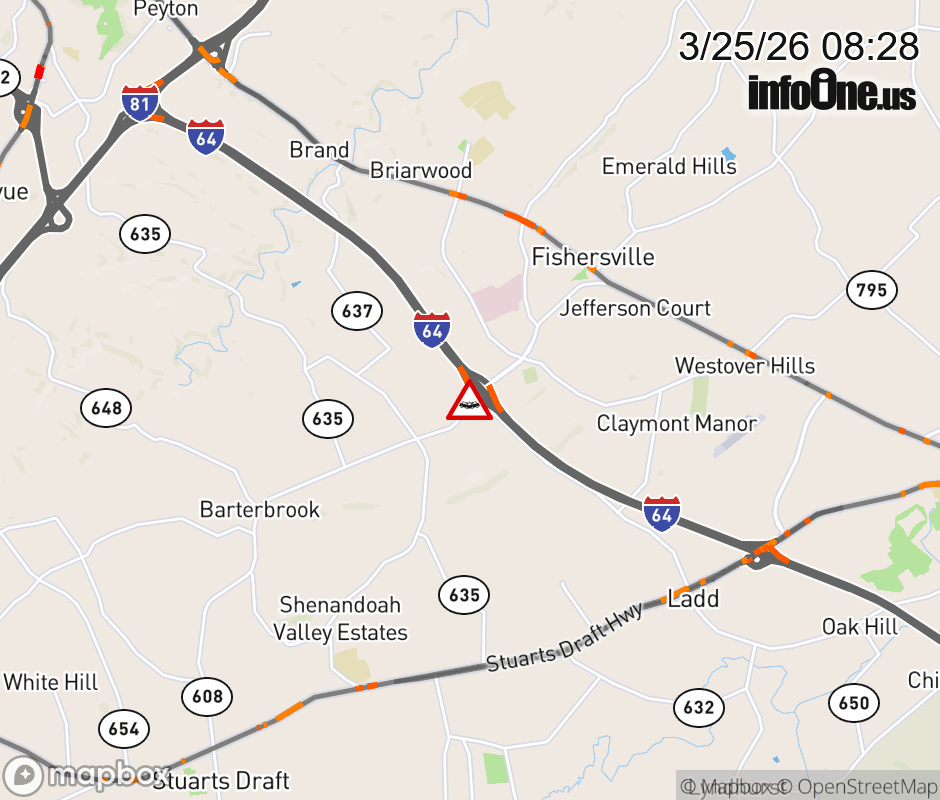 On VA-285 in the County of Augusta, in the vicinity of LADD RD, motorists can expect delays due to a vehicle crash. The south right lane and right shoulder are closed. ![]() |