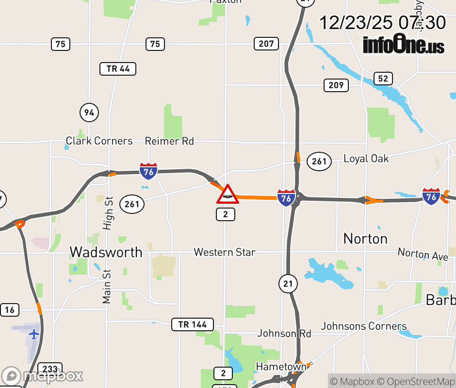 Expect lane closures on I-76/US-224 East beyond SR-261/Akron Rd, due to a crash. ![]() |