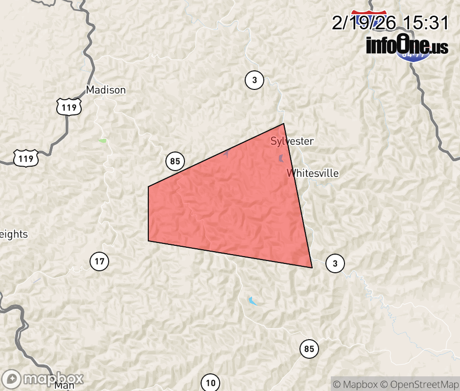 Canceled 2/19/26 3:38 PM Severe Thunderstorm Warning issued February 19 at 3:30PM EST until February 19 at 3:45PM EST by NWS Charleston WV At 329 PM EST, a severe thunderstorm was located over Wharton, or 10 miles southeast of Madison, moving east at 25 mph. HAZARD...Quarter size hail. SOURCE...Radar indicated. IMPACT...Damage to vehicles is expected. Locations impacted include... Van, Wharton, and Sylvester. ![]() |