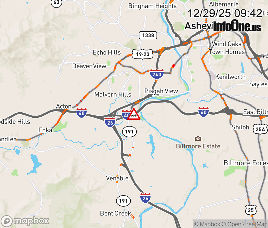 The ramp is narrowed at Exit 47, NC 191 (Brevard Road). ![]() |