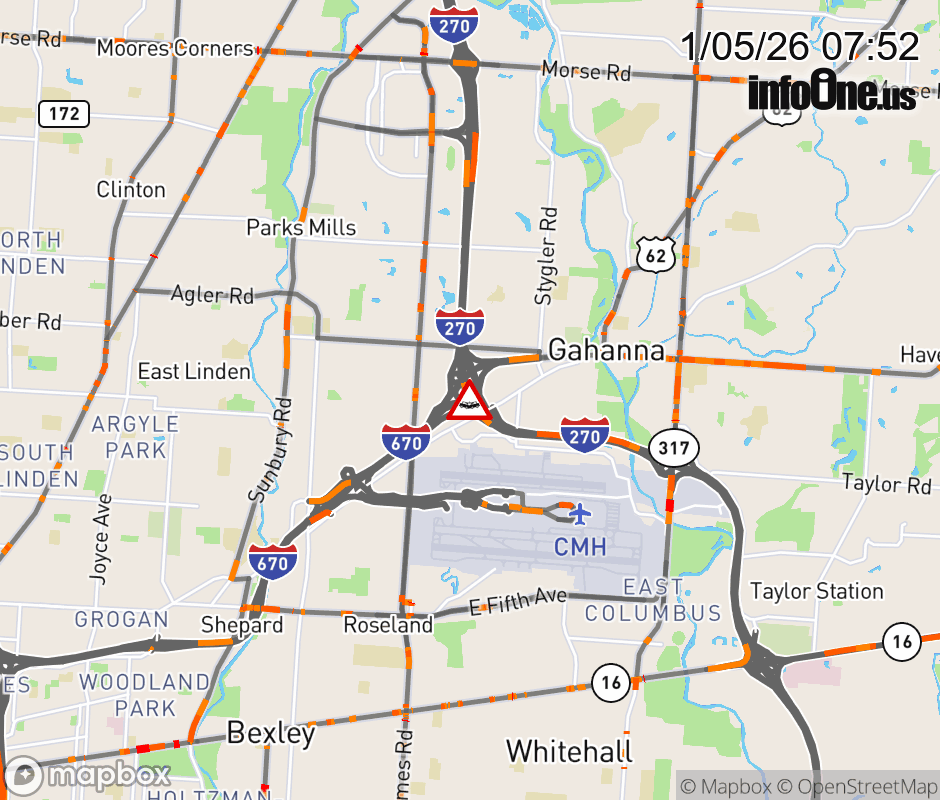 The left lane is blocked on I-270 South at US-62 East, due to a crash. ![]() |