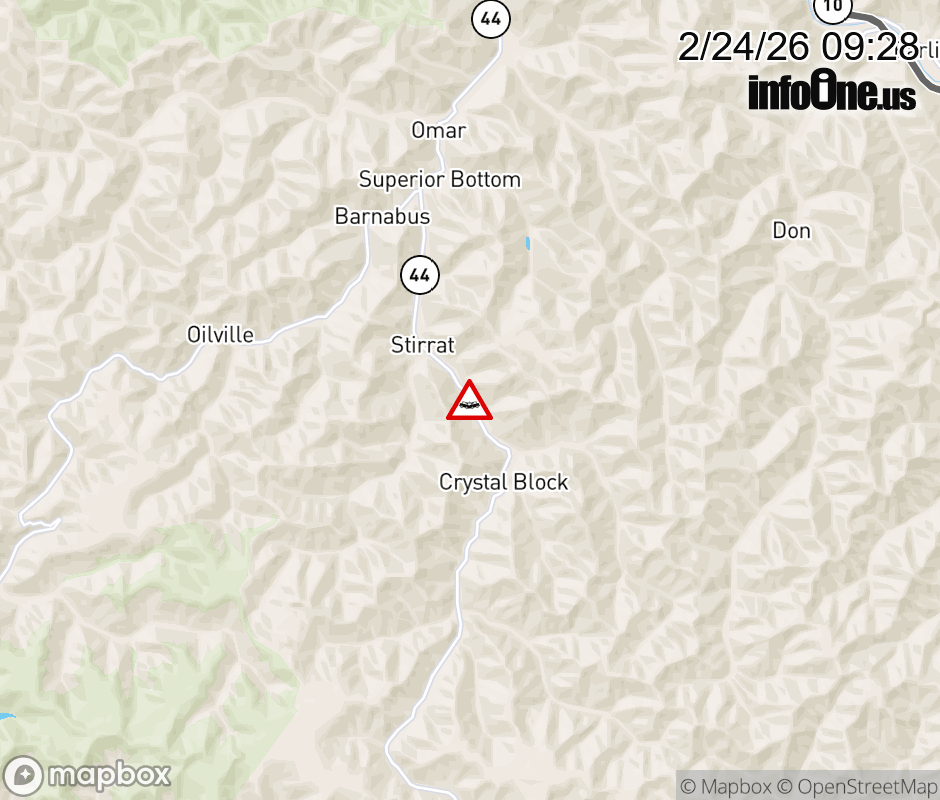 Vehicle Crash on WV-44 Jerry West Hwy @ Knights Landing Rd. The southbound road is closed. The northbound road is closed. ![]() |