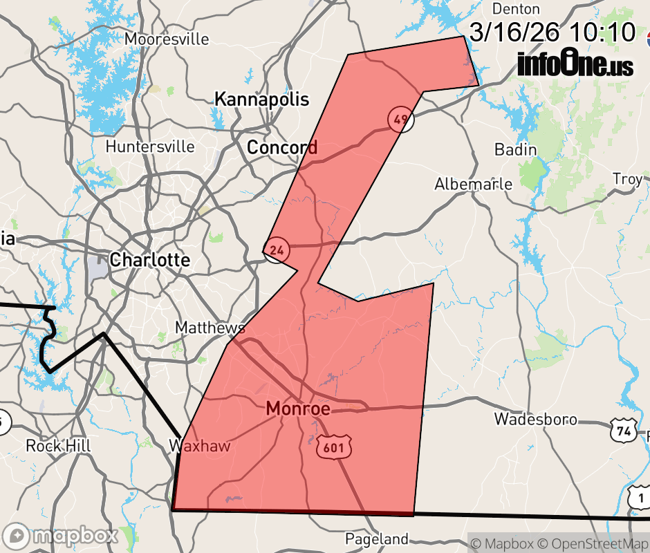 Canceled 3/16/26 10:25 AM Severe Thunderstorm Warning issued March 16 at 10:09AM EDT until March 16 at 10:45AM EDT by NWS Greenville-Spartanburg SC At 1009 AM EDT, severe thunderstorms were located along a line extending from 11 miles east of Kannapolis to 7 miles southwest of Monroe, moving east at 35 mph. HAZARD...60 mph wind gusts. SOURCE...Radar indicated. IMPACT...Expect damage to trees and power lines. Locations impacted include... Monroe, Indian Trail, Stallings, Unionville, Wesley Chapel, Wingate, Waxhaw, Marshville, Lake Park, and Mineral Springs. ![]() |