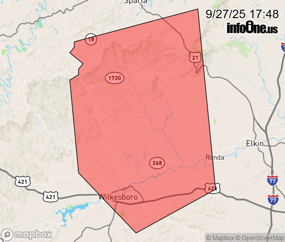 Canceled 9/27/25 6:15 PM Special Weather Statement issued September 27 at 5:45PM EDT by NWS Blacksburg VA At 544 PM EDT, Doppler radar was tracking a cluster of strong thunderstorms over North Wilkesboro, moving northeast at 20 mph. HAZARD...Pea size hail and wind gusts up to 30 mph. SOURCE...Radar indicated. IMPACT...Loose objects may be knocked over by wind gusts. Locations impacted include... North Wilkesboro... Wilkesboro... Ronda... Traphill... Mc Grady... Mulberry... and Roaring Gap. ![]() |