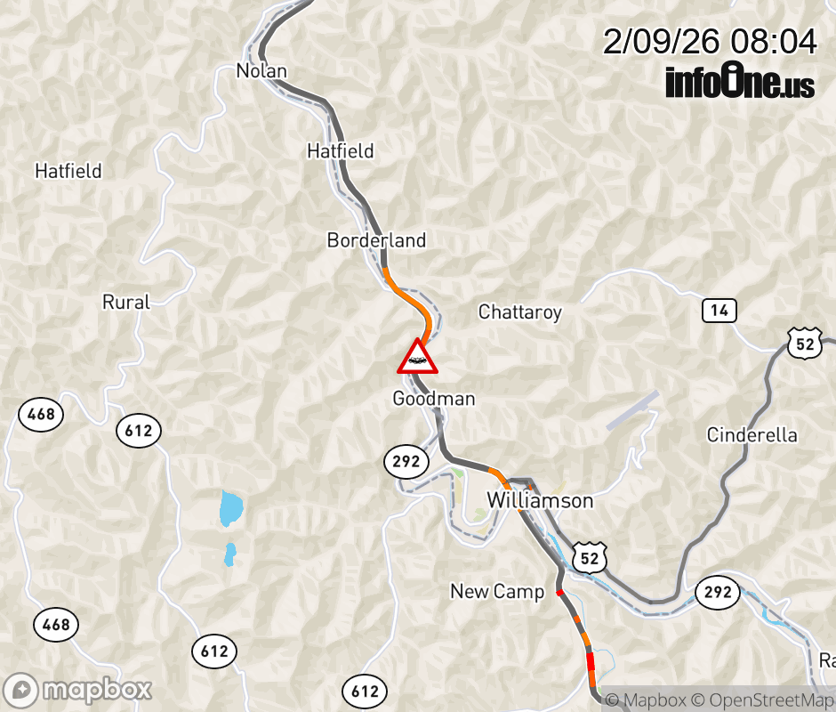 Vehicle Crash on US-119 North (Robert C Byrd Fwy) & Sec Rd (Chattaroy Exit). The northbound road is closed. Updated: Mon 2/9/26 8:04 AM EST ![]() Updated: Mon 2/9/26 8:04 AM EST |