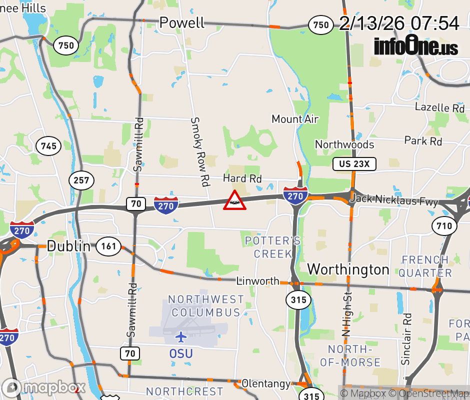 The right shoulder is blocked on I-270 West beyond SR-315 South, due to a crash. ![]() |