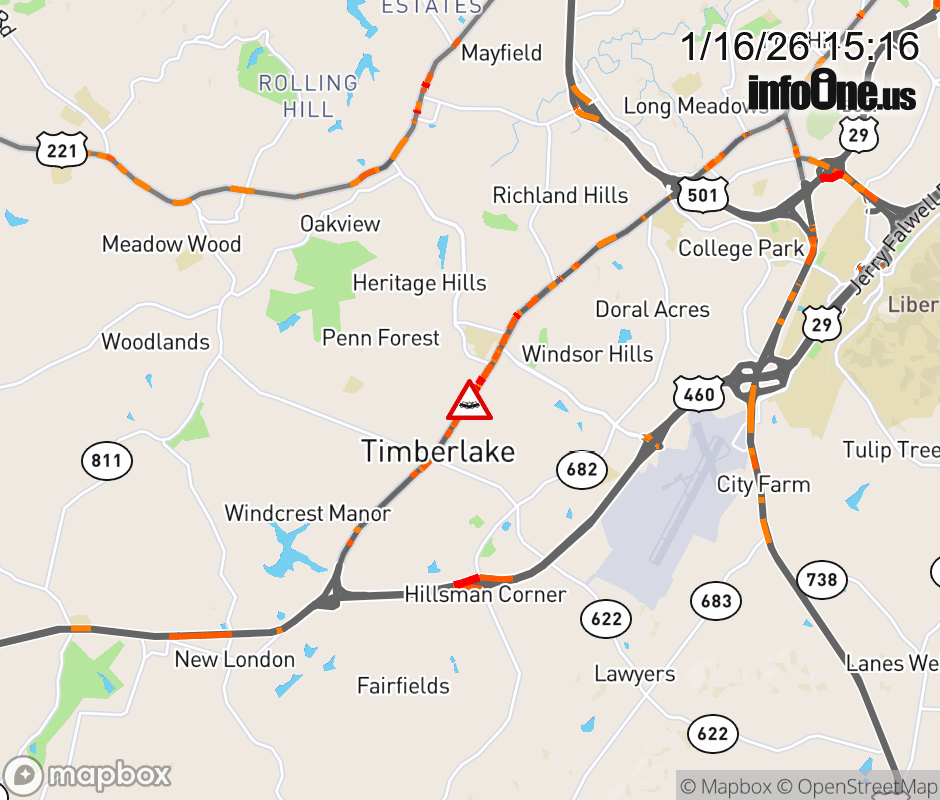 On BUS US-460 East in the County of Campbell, in the vicinity of Powtan Dr; Rt. 859E/W (Campbell County), motorists can expect delays due to a vehicle crash. Lane closures exist. ![]() |