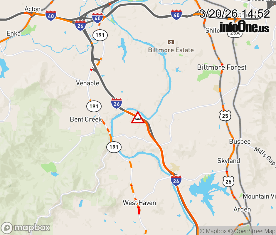 The left lane is closed 2 miles east of Exit 33, NC 191 (Brevard Road). ![]() |