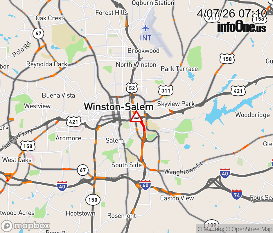 The left lane is closed near Exit 109 (US 421). ![]() |