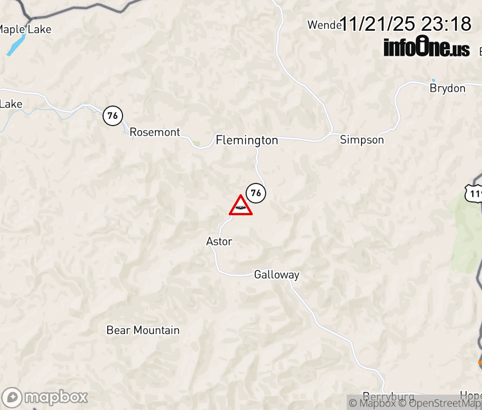 Vehicle Crash on WV-76 (Veterans Memorial Hwy/Ross Rd). Updated: Fri 11/21/25 11:18 PM EST ![]() Updated: Fri 11/21/25 11:18 PM EST |