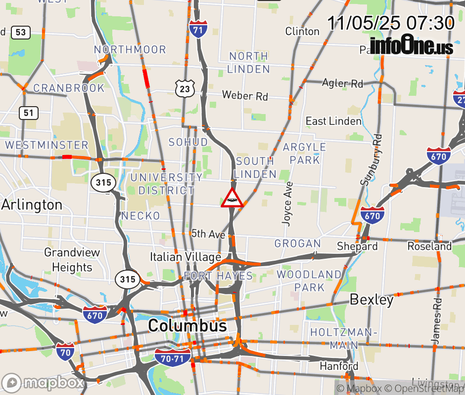 The right lane is blocked on I-71 South at 11Th Ave, due to a crash. ![]() |