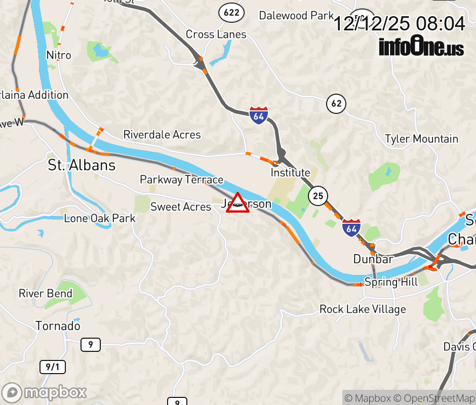 Vehicle Crash on US-60 (6900 BLK of MacCorkle Ave SW) in Jefferson/St Albans. Updated: Fri 12/12/25 8:04 AM EST ![]() Updated: Fri 12/12/25 8:04 AM EST |