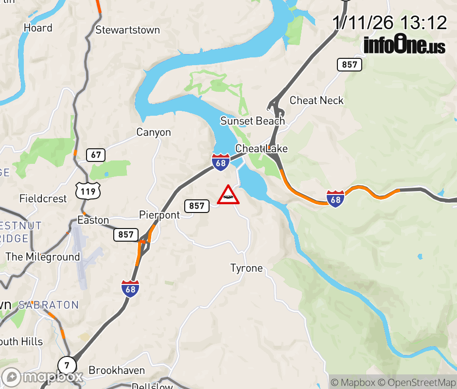 Vehicle Crash on CR-857 (Cheat Rd) & CR-75 (Tyrone Rd) in Morgantown. ![]() |