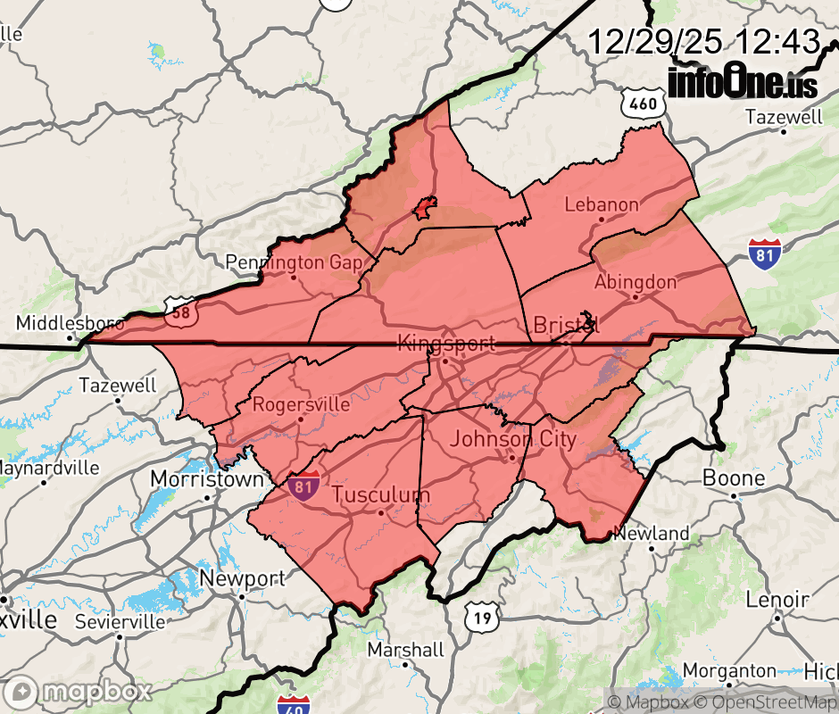 Canceled 12/29/25 4:00 PM Wind Advisory issued December 29 at 12:42PM EST until December 29 at 4:00PM EST by NWS Morristown TN * WHAT... West winds 15 to 20 mph with gusts up to 40 mph. * WHERE... Portions of east Tennessee and southwest Virginia. * WHEN... Until 4 PM EST this afternoon. * IMPACTS... Gusty winds will blow around unsecured objects. Tree limbs could be blown down and a few power outages may result. ![]() |