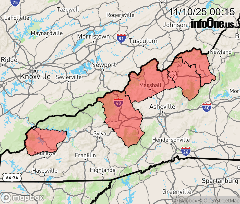 Canceled 11/10/25 11:50 AM Winter Weather Advisory issued November 10 at 12:12AM EST until November 11 at 7:00AM EST by NWS Greenville-Spartanburg SC * WHAT... Snow expected. Total snow accumulations from a dusting to up to 3 inches in the valleys, with 2 to 6 inches expected above 3500 feet. As much as 10 inches possible on the highest peaks along the Tennessee border. Winds gusting as high as 45 mph. * WHERE... Graham, Haywood, Madison, Mitchell, and Yancey Counties. * WHEN... Until 7 AM EST Tuesday. * IMPACTS... The heavy snow will make many roads impassable and may produce widespread power outages due to the weight of the snow on tree limbs and power lines. The hazardous conditions could impact the Monday morning and evening commutes. Gusty winds could bring down tree branches. ![]() |