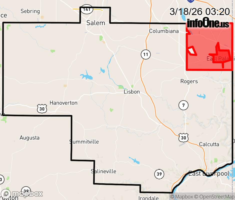 Canceled 3/18/26 3:40 AM Columbiana County has 1 power outage affecting 176 customers. Ohio Edison 176 without power Unity Township: Customers affected: 142 (9%) Estimated repair: Wed 5:30 AM New Waterford: Customers affected: 19 (3%) Estimated repair: Wed 5:30 AM Columbiana: Customers affected: 19 (10%) Estimated repair: Wed 5:30 AM Fairfield Township: Customers affected: 19 (1%) Estimated repair: Wed 5:30 AM Updated: Wed 3/18/26 3:20 AM EDT ![]() Updated: Wed 3/18/26 3:20 AM EDT |