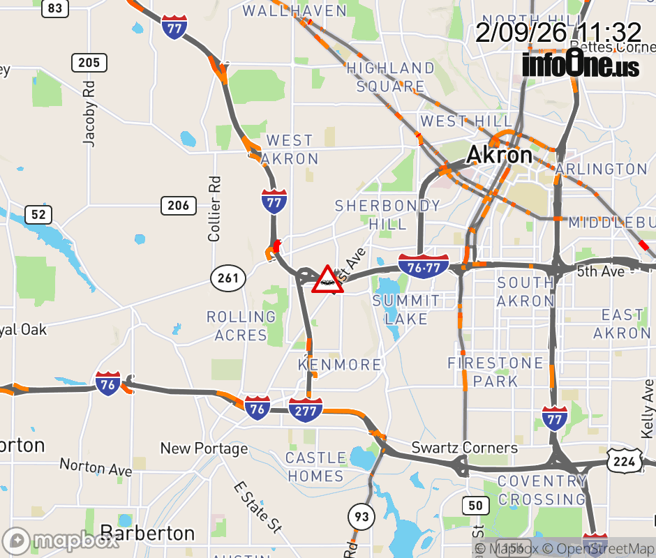 Canceled 2/9/26 12:16 PM Location: I-76 West/I-77 North at MM 20.8, OH Accident.