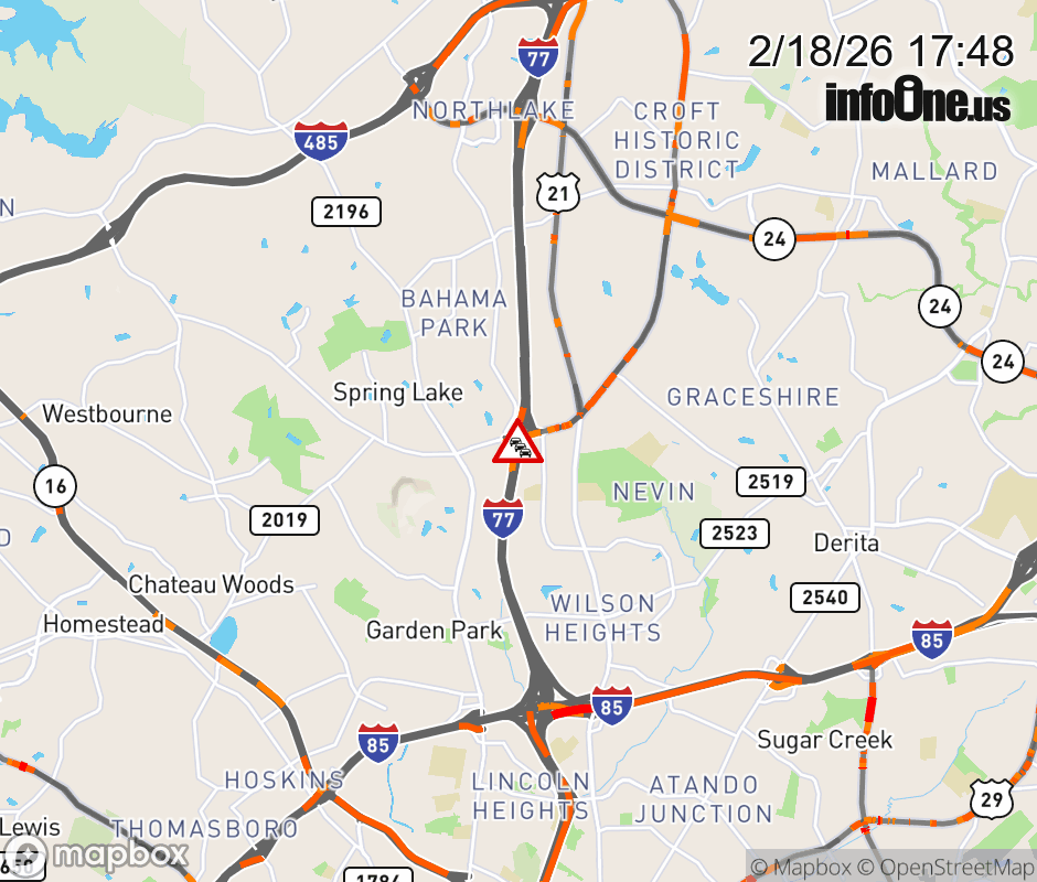 Canceled 2/18/26 6:08 PM Location: I-77S at MM 15.2, NC Road Obstruction.