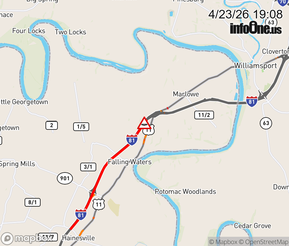 Vehicle Crash on I-81N at Mile Marker 23.0. The northbound 2 left lanes are closed. Updated: Thu 4/23/26 7:08 PM EDT ![]() Updated: Thu 4/23/26 7:08 PM EDT |