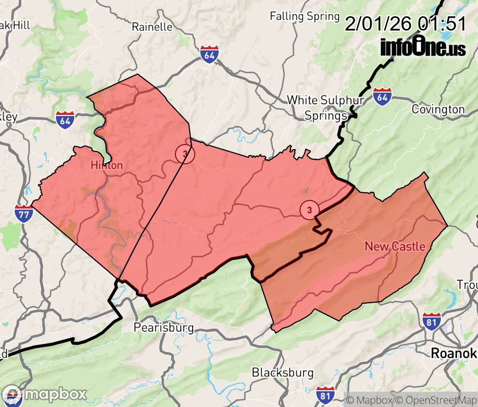 Canceled 2/1/26 1:56 AM Winter Weather Advisory issued February 1 at 1:50AM EST until February 1 at 1:00PM EST by NWS Blacksburg VA * WHAT... Light snow. Additional snow accumulations up to one inch. Winds gusting as high as 45 mph. * WHERE... In Virginia, Craig County. In West Virginia, Monroe and Summers Counties. * WHEN... Until 1 PM EST this afternoon. * IMPACTS... Gusty winds could bring down tree branches. ![]() |