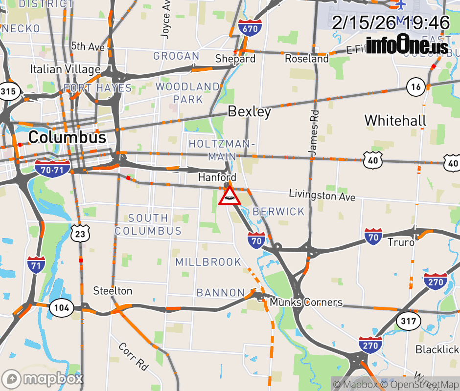 The left lane is blocked on I-70 East at Alum Creek Dr/Livingston Ave, due to a crash. ![]() |
