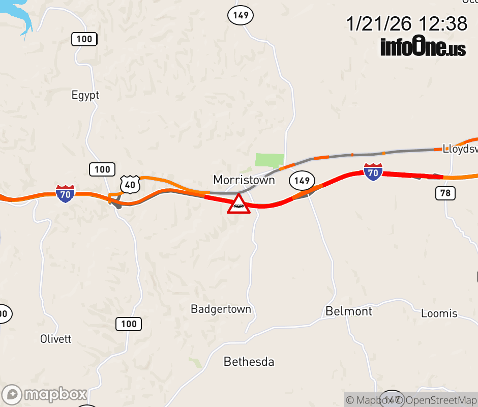 Expect lane closures on I-70 East beyond US-40/National Rd, due to a crash. ![]() |