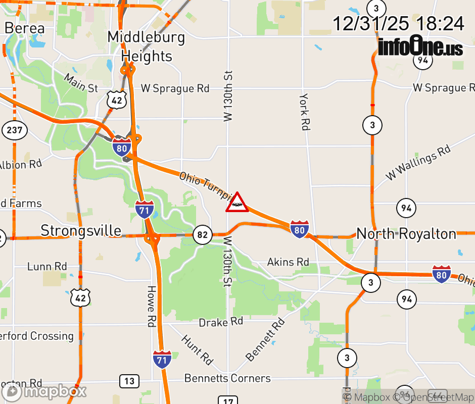Expect lane closures on I-80 West (Ohio Turnpike) beyond I-77, due to a crash. ![]() |