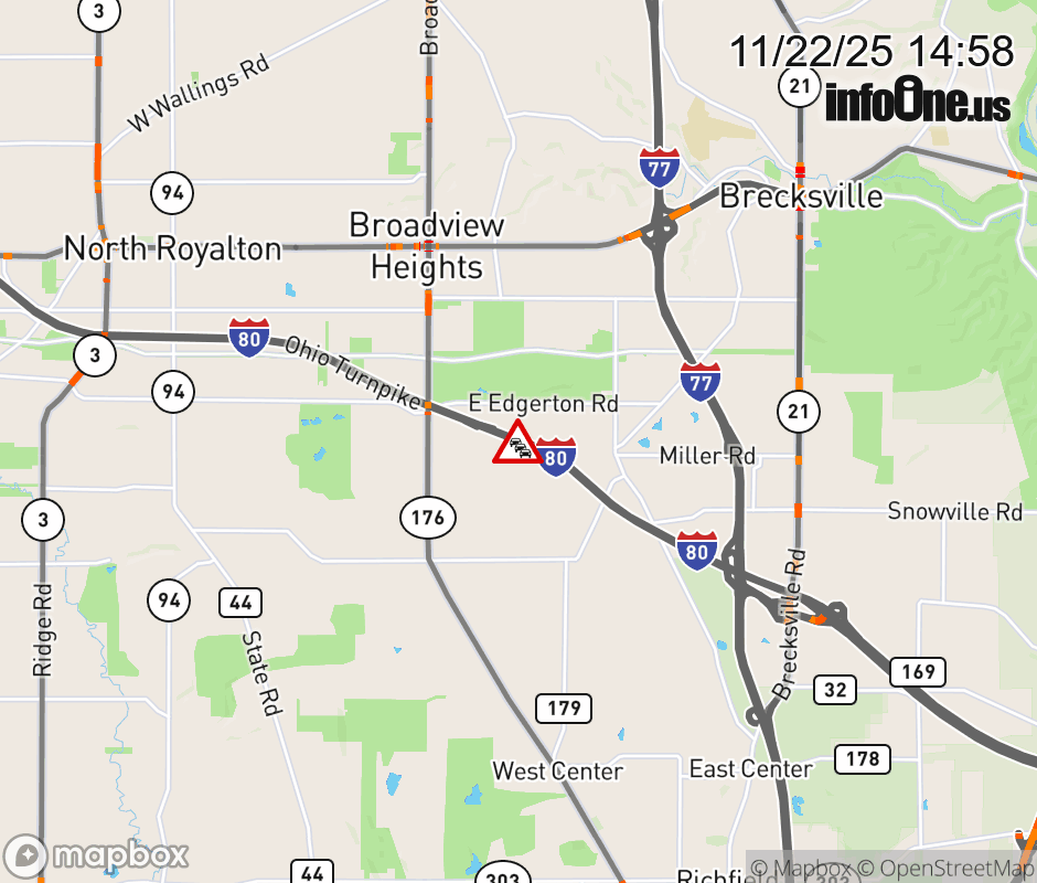 Expect lane closures on I-80 East (Ohio Turnpike) beyond I-71, due to a fire. ![]() |