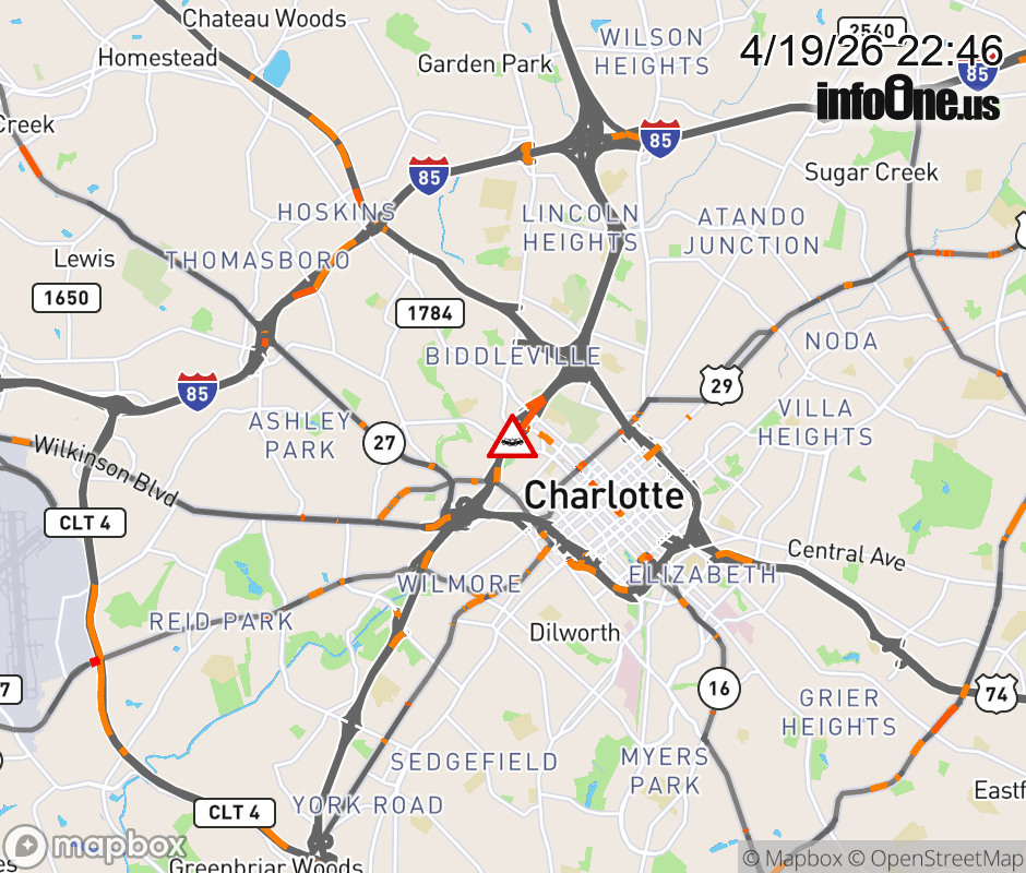 The 2 right lanes lane is closed near Exit 10 (W Trade St). Updated: Sun 4/19/26 10:46 PM EDT ![]() Updated: Sun 4/19/26 10:46 PM EDT |