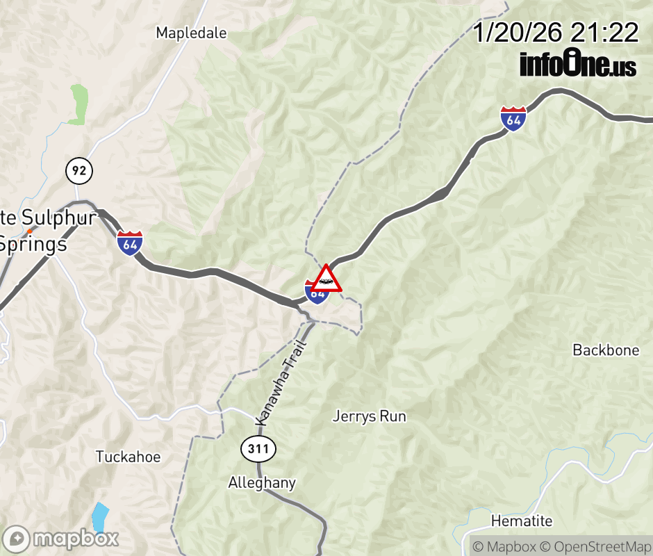 On US-60 in the County of New Kent, in the vicinity of Adkins Rd; N Adkins Rd; Rt. 618N/S (New Kent County), motorists can expect delays due to a vehicle crash. The east right lane and right shoulder are closed. Updated: Tue 1/20/26 9:22 PM EST ![]() Updated: Tue 1/20/26 9:22 PM EST |