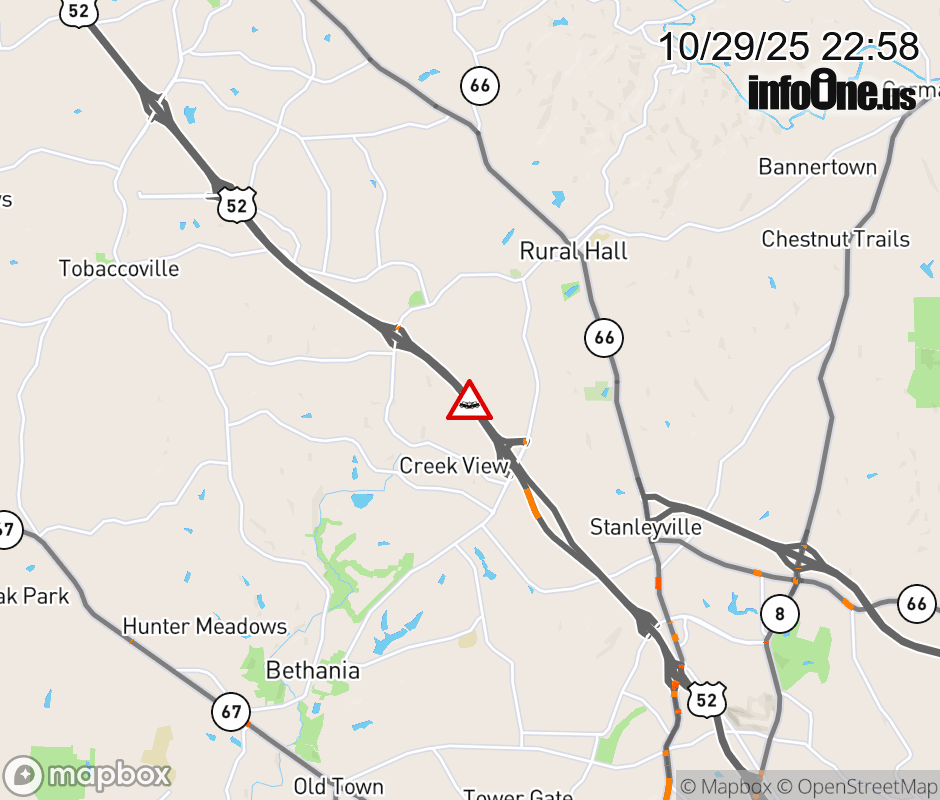 A lane is closed past NC 65/Bethania-Rural Hall Rd.  | |||||||||