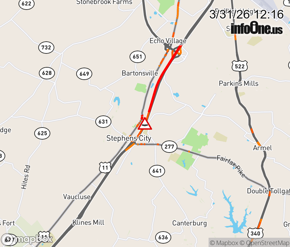 On I-81 South at mile marker 307.8 in the County of Frederick, motorists can expect delays due to a vehicle crash. Traffic backups are approximately 5.0 miles. Updated: Tue 3/31/26 12:16 PM EDT ![]() Updated: Tue 3/31/26 12:16 PM EDT |