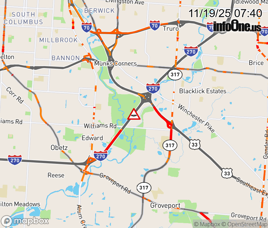 The right lane is blocked on I-270 North beyond Alum Creek Dr, due to a crash. ![]() |