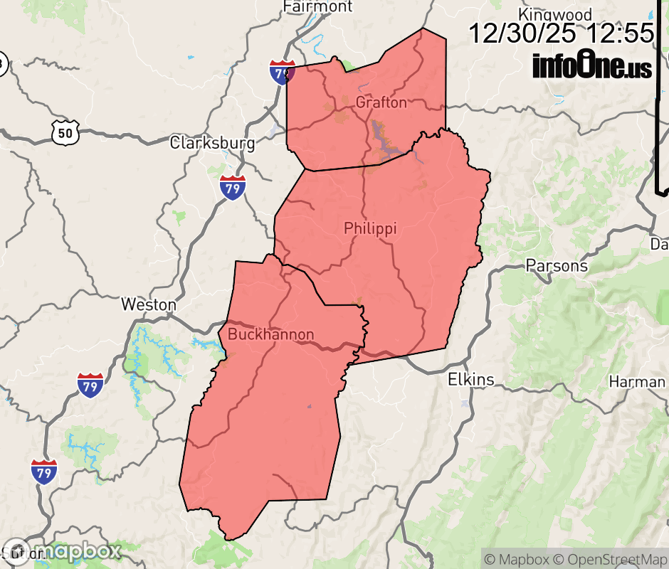 Canceled 12/30/25 8:35 PM Winter Storm Warning issued December 30 at 12:54PM EST until January 1 at 10:00AM EST by NWS Charleston WV * WHAT... Heavy snow expected. Total snow accumulations between 4 and 6 inches. * WHERE... Taylor, Barbour, and Upshur Counties. * WHEN... From 4 PM Wednesday to 10 AM EST Thursday. * IMPACTS... Plan on slippery road conditions. The hazardous conditions could impact the Wednesday evening and Thursday morning commutes. ![]() |