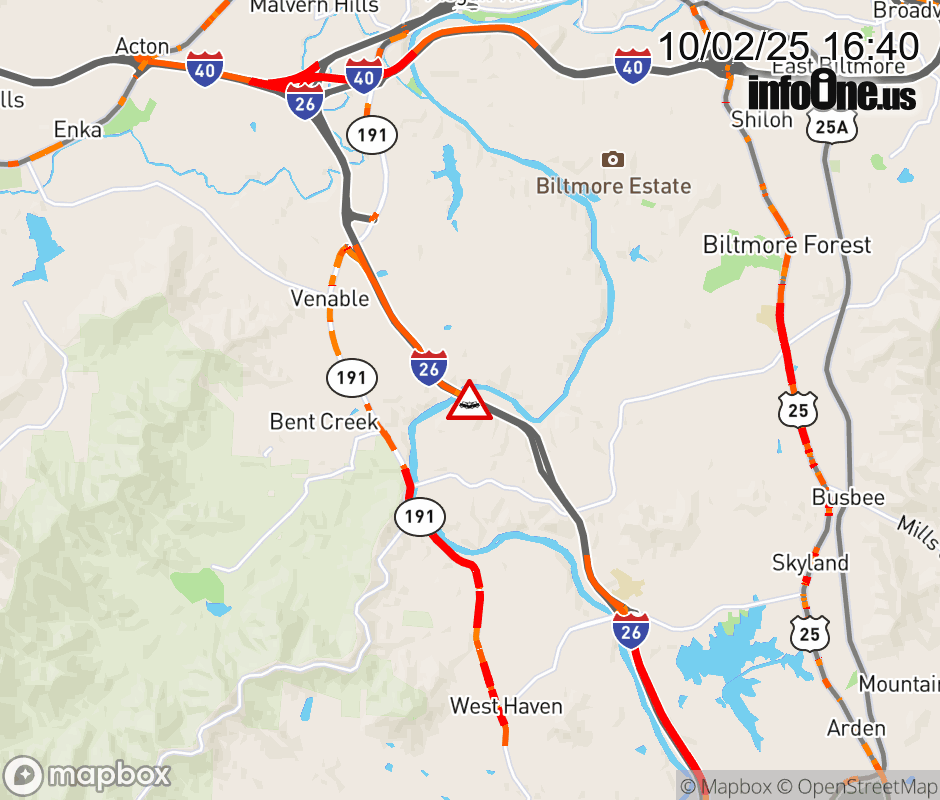 The right shoulder is closed 2.5 miles east of Exit 33, NC 191 (Brevard Road). ![]() |